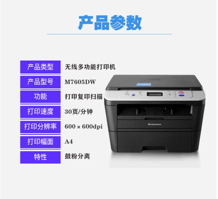 聯想M7605DW打印機M7405DWM7400W激光A4多功能一體機手機無線WIFI