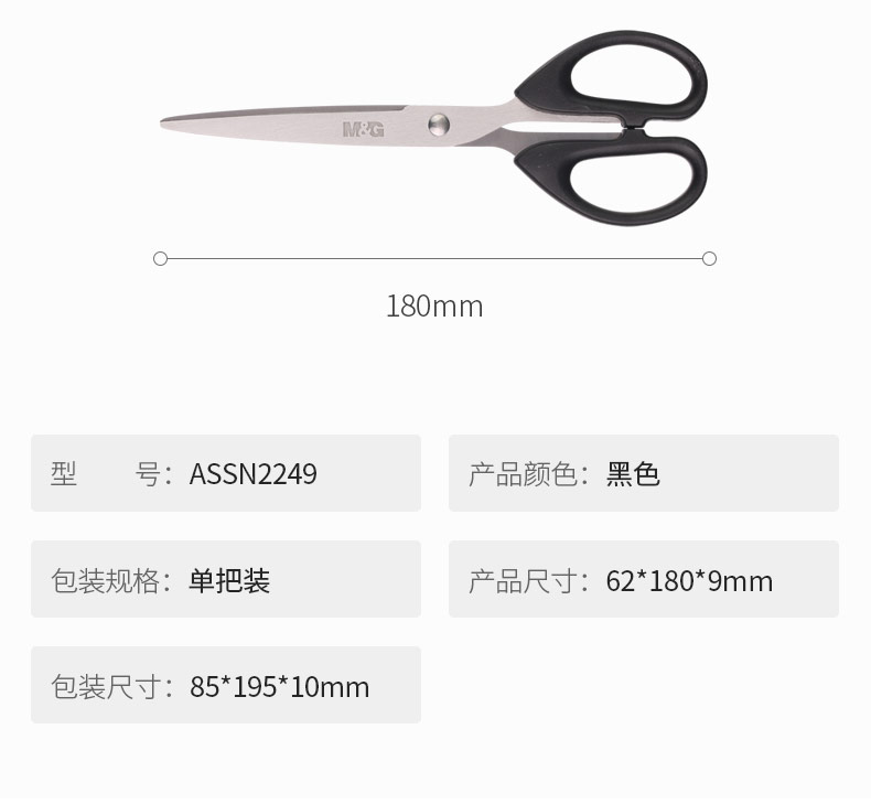 晨光(M&G)文具黑色180mm經典辦公剪刀 學生手工剪紙刀 普惠型家用剪子 單把裝ASSN2249